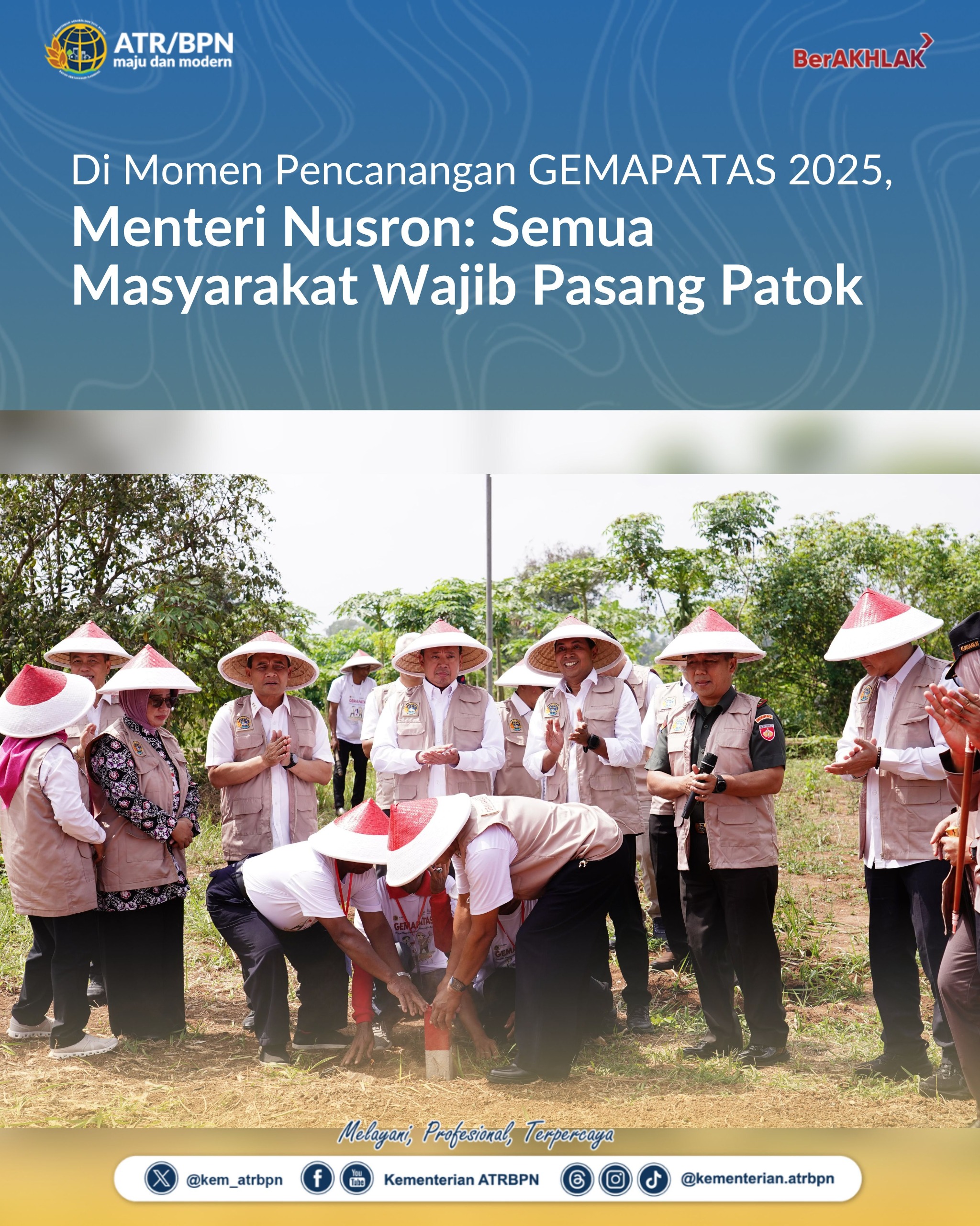 *Di Momen Pencanangan GEMAPATAS 2025, Menteri Nusron: Semua Masyarakat Wajib Pasang Patok