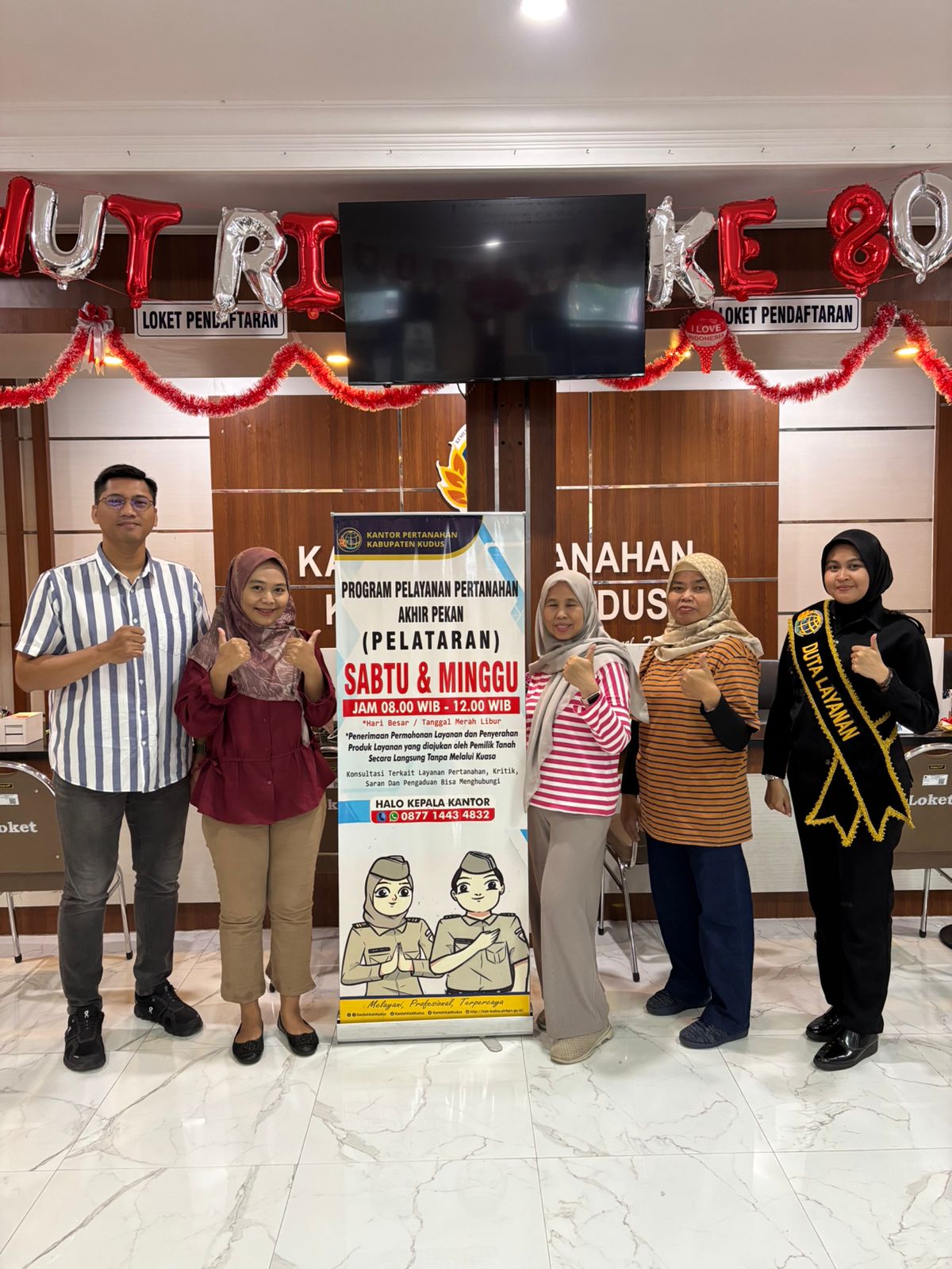Kudus – Dalam upaya meningkatkan kualitas, jangkauan, dan kemudahan akses terhadap layanan pertanahan, Kantor Pertanahan Kabupaten Kudus kembali menghadirkan program unggulan Kementerian Agraria dan Tata Ruang/Badan Pertanahan Nasional (ATR/BPN), yaitu Pelayanan Tanah Akhir Pekan atau PELATARAN.