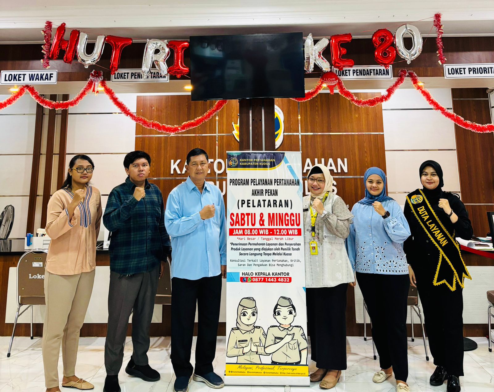 Kudus – Dalam upaya meningkatkan kualitas, jangkauan, dan kemudahan akses terhadap layanan pertanahan, Kantor Pertanahan Kabupaten Kudus kembali menghadirkan program unggulan Kementerian Agraria dan Tata Ruang/Badan Pertanahan Nasional (ATR/BPN), yaitu Pelayanan Tanah Akhir Pekan atau PELATARAN.