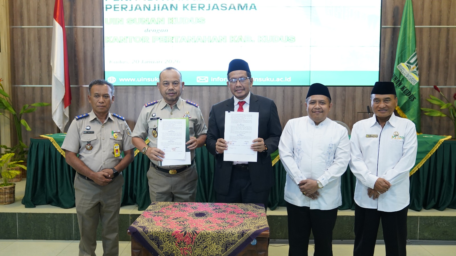 Kudus – Universitas Islam Negeri (UIN) Sunan Kudus dan Kantor Pertanahan Kabupaten Kudus secara resmi menjalin kerja sama melalui penandatanganan Nota Kesepahaman (MoU) tentang Tri Dharma Perguruan Tinggi, yang meliputi bidang pendidikan, penelitian, dan pengabdian kepada masyarakat. Kegiatan tersebut dilaksanakan pada Selasa, 20 Januari 2026, bertempat di Aula Lantai 3 Gedung Rektorat UIN Sunan Kudus, dan dimulai pukul 12.30 WIB.