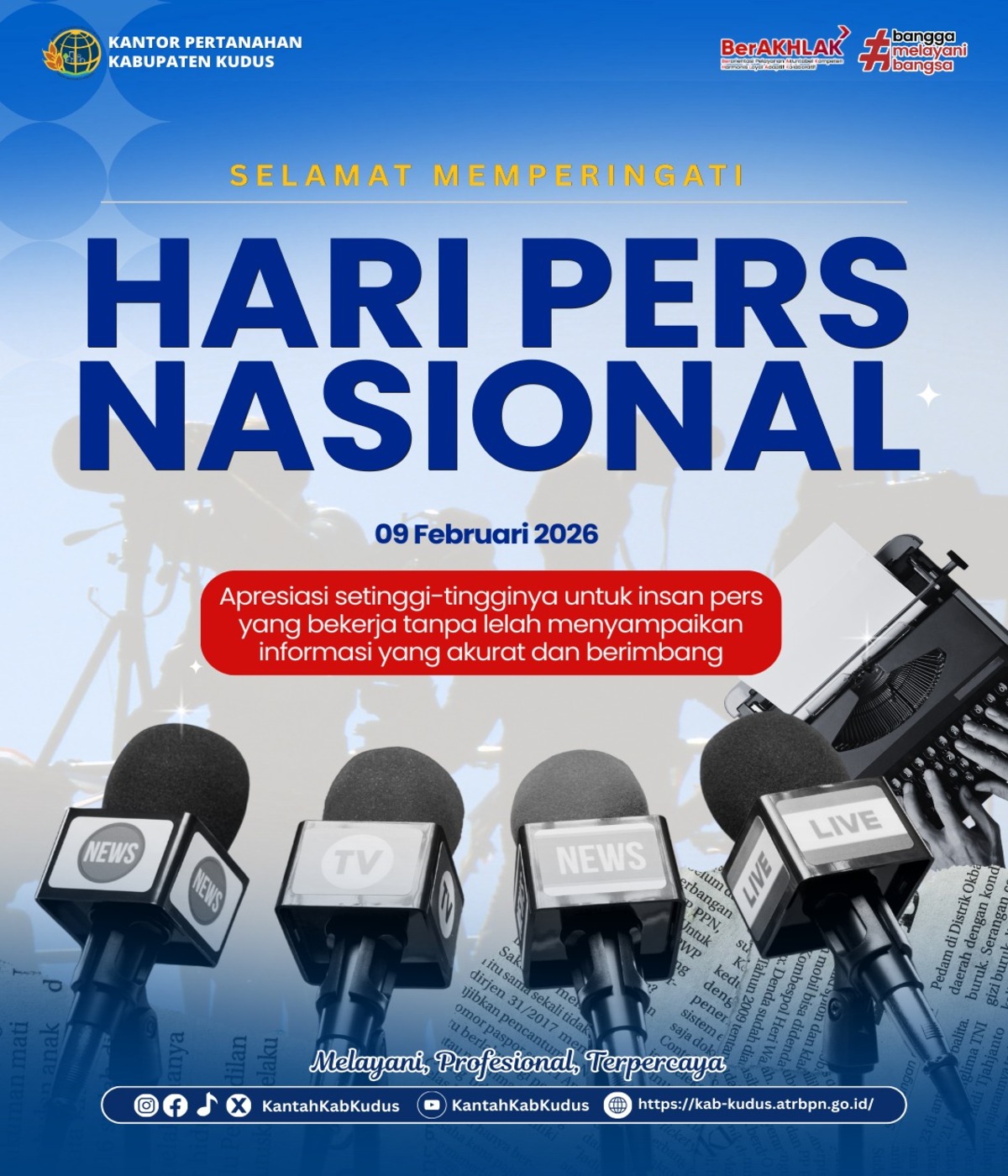 Kantor Pertanahan Kabupaten Kudus Ucapkan Selamat Memperingati Hari Pers Nasional 9 Februari 2026