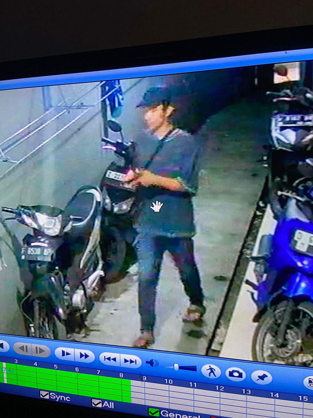 Berdasarkan rekaman CCTV dari kontrakan yang berada di depan lokasi kejadian, sekitar pukul 03.30 WIB terlihat seorang pria mencurigakan masuk ke area kontrakan milik Pak Somad. Beberapa menit kemudian, pria tersebut terlihat keluar dan menuju ke arah gerbang berwarna oranye yang merupakan akses ke rumah warga.
