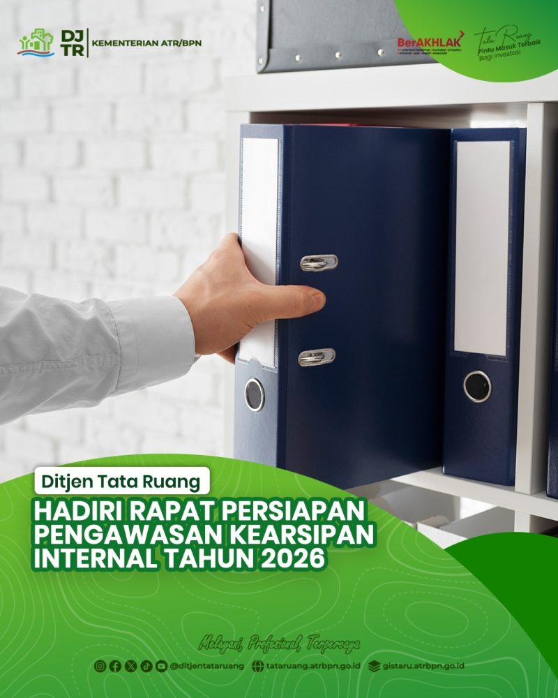 Jakarta – Direktorat Jenderal Tata Ruang Kementerian Agraria dan Tata Ruang/Badan Pertanahan Nasional (ATR/BPN) menghadiri Rapat Persiapan Pengawasan Kearsipan Internal Tahun 2026 yang diselenggarakan secara luring dan daring pada Kamis (2/4/2026) di Kantor Kementerian ATR/BPN.