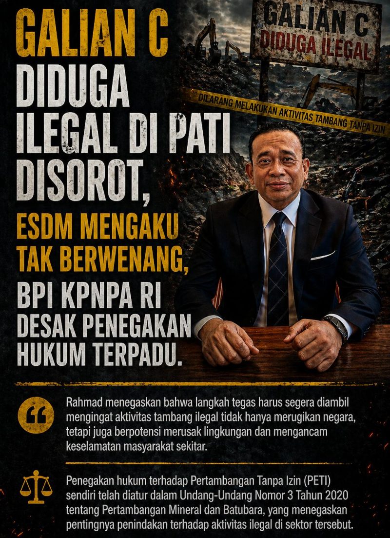 Galian C Diduga Ilegal di Pati Disorot, ESDM Mengaku Tak Berwenang, BPI KPNPA RI Desak Penegakan Hukum Terpadu