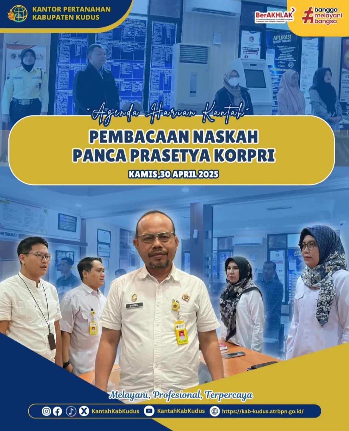 Kudus, 03 November 2025 – Dalam upaya meningkatkan kedisiplinan, koordinasi, dan mutu layanan kepada masyarakat, Manager Loket Kantor Pertanahan Kabupaten Kudus,Risna Hidayati, S.E memimpin pelaksanaan