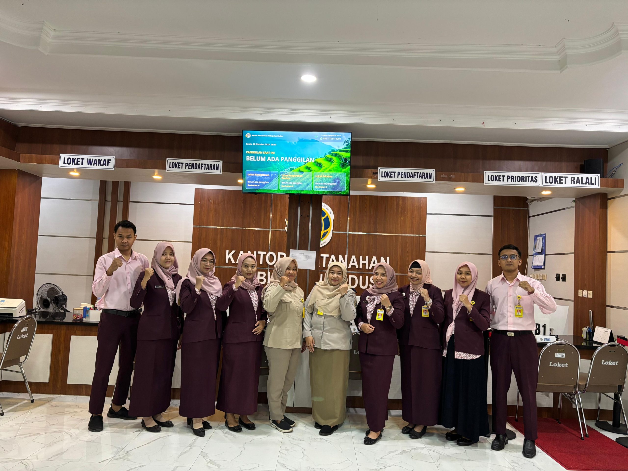 Kudus, 20 Oktober 2025 – Dalam upaya meningkatkan kedisiplinan, koordinasi, dan mutu layanan kepada masyarakat, Manager Loket Kantor Pertanahan Kabupaten Kudus, Iin Parlina, S.SiT….