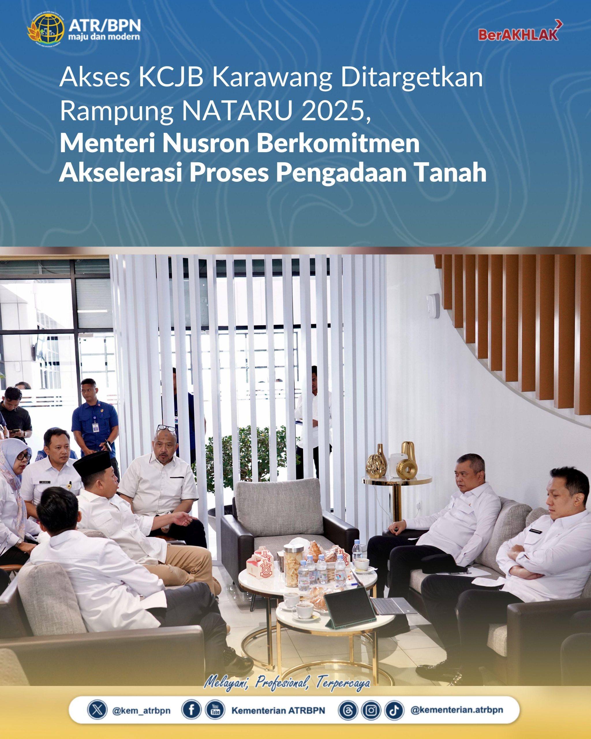 Karawang – Menteri Agraria dan Tata Ruang/Kepala Badan Pertanahan Nasional (ATR/BPN), Nusron Wahid, menghadiri Rapat Koordinasi Percepatan Pembangunan Akses Stasiun Kereta Cepat Jakarta–Bandung (KCJB)…
