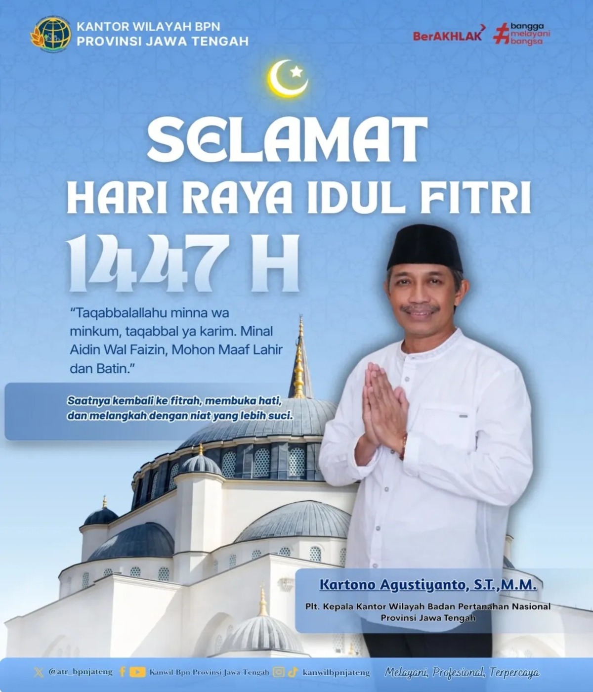 Semarang – Pelaksana Tugas (Plt.) Kepala Kantor Wilayah Badan Pertanahan Nasional (BPN) Provinsi Jawa Tengah, Kartono Agustiyanto, bersama segenap keluarga besar Kantor Wilayah BPN…